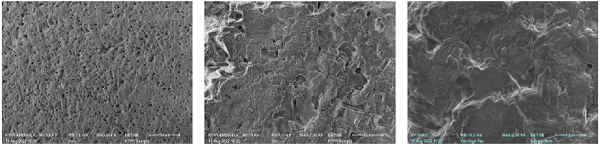 在使用扫描电镜对氧化铝陶瓷的微观形貌特征、孔隙结构和晶粒生长进行观察时,图1 a的氧化铝晶粒呈不规则块状形貌,晶粒尺寸从几百纳米至几十微米不等,b&c分别为二次电子像和背散射电子像,可以发现比起二次电子像突出形貌衬度,背散射电子像对于成分的区分更为明显,更易区分陶瓷主体和杂质。